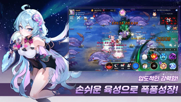 '달토끼 린'의 세계에서는 상상 이상의 전투 경험을 만끽할 수 있습니다. 수십 가지에 달하는 다채로운 스킬 조합으로 몰려드는 몬스터들을 단숨에 소탕하고, 달달하게 성장한 린의 캐릭터로 전장을 압도하세요. 강력한 한 방에 적들이 폭발하는 듯한 짜릿한 타격감은 물론, 특별한 마법 절구카포를 비롯한 수많은 무기를 손쉽게 획득하며 끝없이 강해지는 자신을 발견할 것입니다. 그저 시간을 보내는 것만으로도 최강의 장비를 갖추고 막강한 힘을 발휘하는 린의 성장을 지켜보는 기쁨을 느껴보세요.