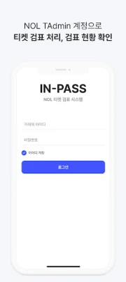 문화 행사의 현장 운영을 혁신할 준비가 되셨습니까? (주)놀유니버스에서 선보이는 IN-PASS는 NOL 티켓을 통해 예매된 소중한 문화 생활의 순간들을 더욱 매끄럽고 효율적으로 관리하도록 설계된 첨단 검표 솔루션입니다. 이제 번거로운 수동 확인 절차 대신, 정교하게 고안된 시스템을 통해 티켓 사용 기록부터 현장 검표 정보까지 모든 데이터를 실시간으로 기록하고 TAdmin 시스템과 연동하여 한눈에 파악할 수 있게 됩니다. IN-PASS는 단순한 검표를 넘어, 행사의 시작부터 끝까지 원활한 흐름을 보장하는 핵심적인 동반자가 될 것입니다.