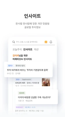 오직 당신에게 최적화된 맞춤형 투자 환경을 경험해보세요. 낮에는 밝고 선명한 라이트 모드로, 밤에는 눈의 피로를 덜어주는 다크 모드로 자동으로 전환되어 언제나 쾌적한 화면을 제공합니다. 'MY 자산', 'MY 연금', 'MY 펀드' 등 개인화된 MY 화면에서는 나의 모든 투자 현황과 정보를 한눈에 확인하고, 필요한 업무로 즉시 연결됩니다. 또한, 국내외 주식, 상품, 투자 정보를 하나의 키워드로 통합 검색하고, 관심 있는 뉴스와 리서치, 금융 정보를 일일이 찾아 헤맬 필요 없이 통합 피드에서 편리하게 받아볼 수 있어 시간과 노력을 절약해 드립니다.