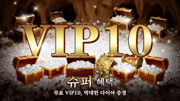 모든 용사에게 주어지는 전례 없는 특권으로 당신의 여정을 시작하세요. VIP 10 등급을 무료로 경험하고, 수백만 개의 다이아몬드로 무장하여 강력한 첫걸음을 내딛으십시오. 여기에 '전설의 시작' 패키지가 자동 지급되어, 처음부터 압도적인 힘과 풍요로움을 만끽할 수 있습니다. 당신의 전장은 단순한 전투를 넘어, 황금빛 기회와 영광으로 가득 찬 새로운 신화가 될 것입니다.
